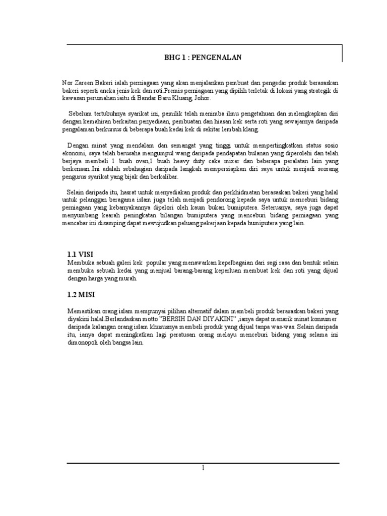 Related : Contoh Kertas Kerja Rancangan Perniagaan Bakeri - Memberi keterangan dan maklumat berkenaan dengan perniagaan yang hendak dijalankan..