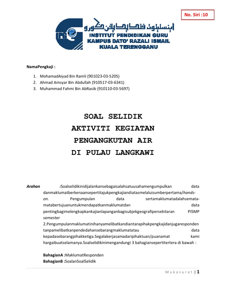 Perkongsian soalan, nota, latihan, skema jawapan, bahan rujukan dan informasi terkini blog usaha padu dapat membantu para guru, pelajar dan ibu bapa. Borang kaji atau soal selidik ini perlu dibuat dan disertakan dalam perlaksanaan kajian kes bagi ujian pelbagai instrumen (geografi) pentaksiran tingkatan 3 (pt3). Borang soal selidik atau temubual ini hanya boleh dibentuk berdasarkan objektif penyelidikan untuk mengumpul data kajian berdasarkan kawasan kajian. Pengangkutan awam di bandar sg long kajangfull description. Contoh borang soal kaji selidik tugasan geografi pt3 2014 | contoh rasmi borang soal atau kaji selidik bagi tugasan geografi pt3 2014.