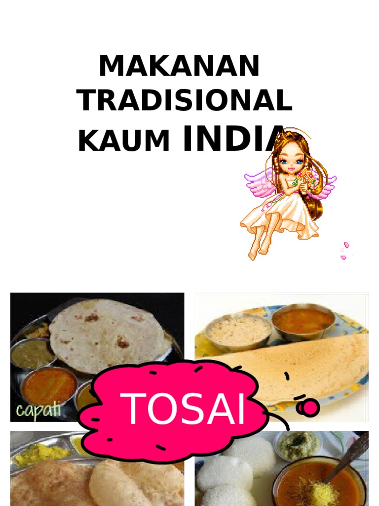 Masakan india timur masakan india timur masyhur dengan pencuci mulit, terutamanya manisan seperti rasagolla, chumchum, sandesh, rasabali, chhena poda, chhena gaja, chhena jalebi dan kheeri. Nasi daun pisang adalah makanan tradisional bagi kaum india. Terdapat dua jenis vadai iaitu paruppu vadai dan ulunthu vadai. Sarapan pagi tradisional termasuk pantabhat atau pakhaal, dan juga. Setiap keluarga masakan india dicirikan oleh suatu campuran luas teknik hidangan dan masakan. Setiap kali sambutan perayaan sesuatu kaum, terdapat pelbagai makanan tradisional disediakan dan ditonjolkan kepada para pelancong. Ø pada versi yang lain, perkataan canai datangnya dari nama bandar chennai, india disebabkan ramai pencanai roti ini kebanyakkan berasal dari sana pada ketika kebanjiran orang india di malaysia. Kini, ia turut dinikmati oleh semua kaum di malaysia, sri lanka dan singapura sebagai snek yang biasanya di makan ketika sarapan pagi. Nasi daun pisang adalah makanan tradisional bagi kaum india. Murukku adalah makanan ringan yang sedap, rangup dan senang dibuat dan murah kosnya. Makanan tradisional kaum india 1. Daging yang dipilih bisa dari banyak hewan. Makanan tradisional ini berasal dari india.tosai dimakan sebagai sarapan pagi atau makan malam.tosai amat kaya dengan karbohidrat dan protein.